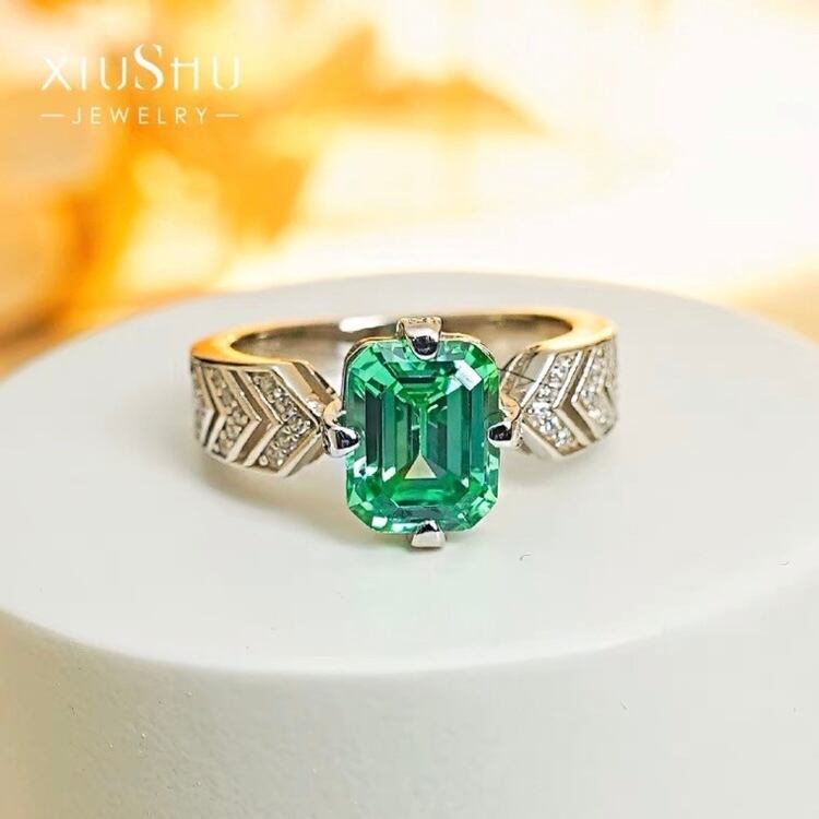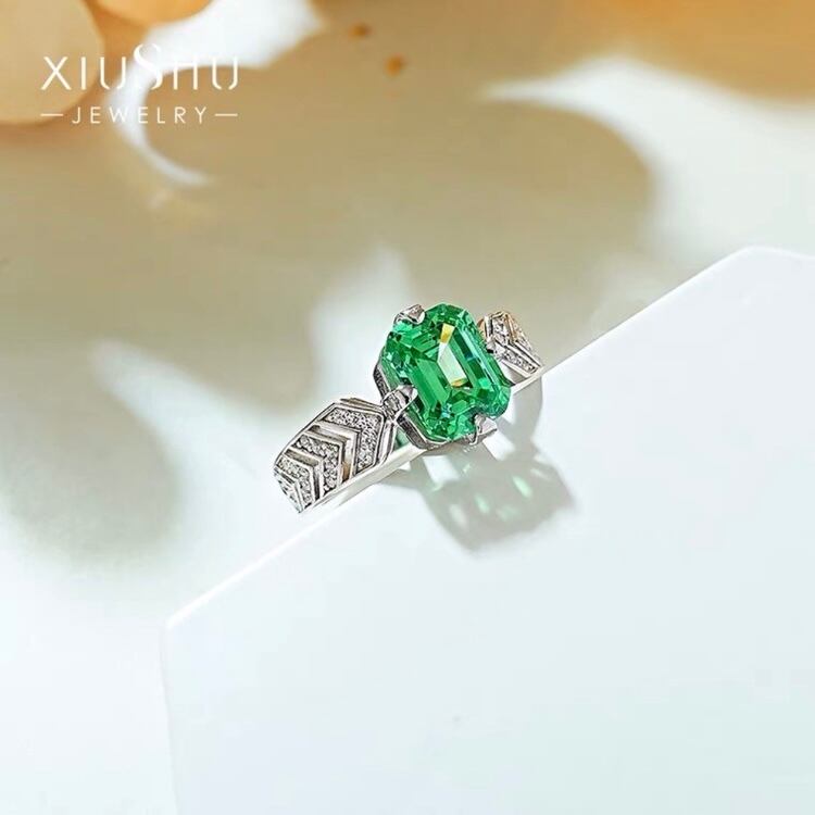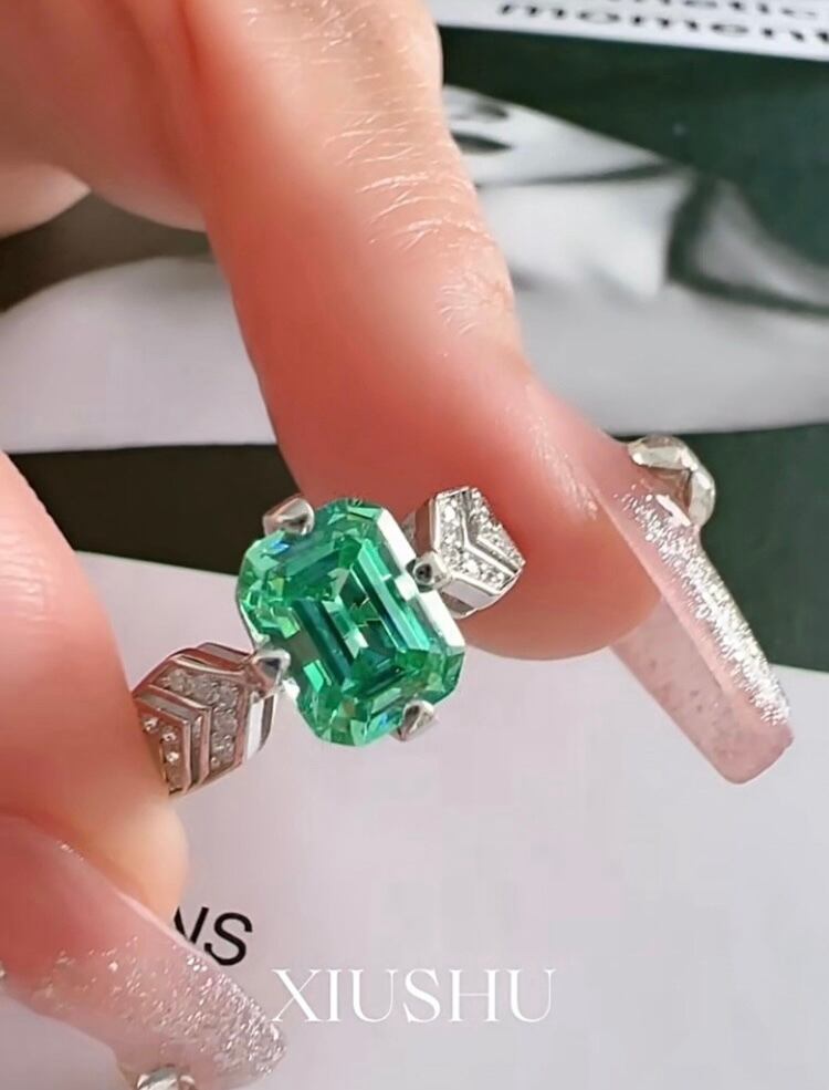 オリジナルの高炭素ダイヤモンドの人工グリーントルマリンリングになります。