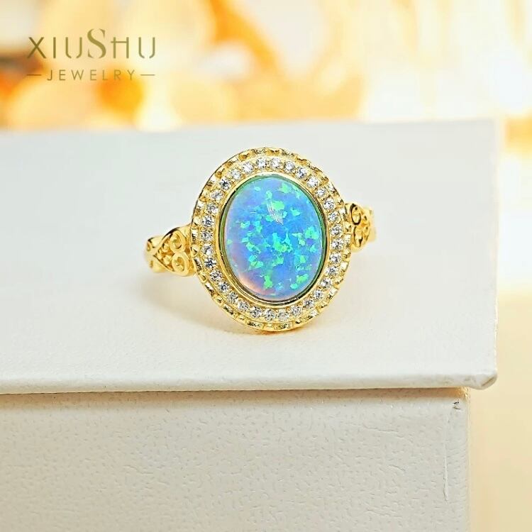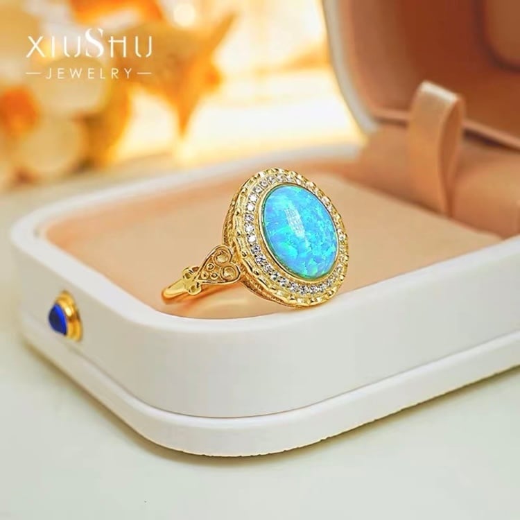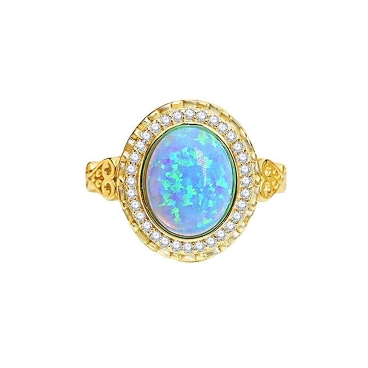オリジナルの人工ブルーオパールと高炭素ダイヤモンドのリングになります。