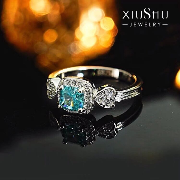 オリジナルの高炭素ダイヤモンドの人工ブルートパーズリングになります。