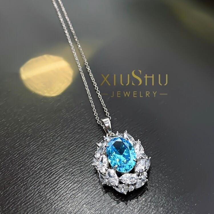 オリジナルの人工ブルートパーズのラディアントカットネックレスになります。ネックレス一点の内容です。