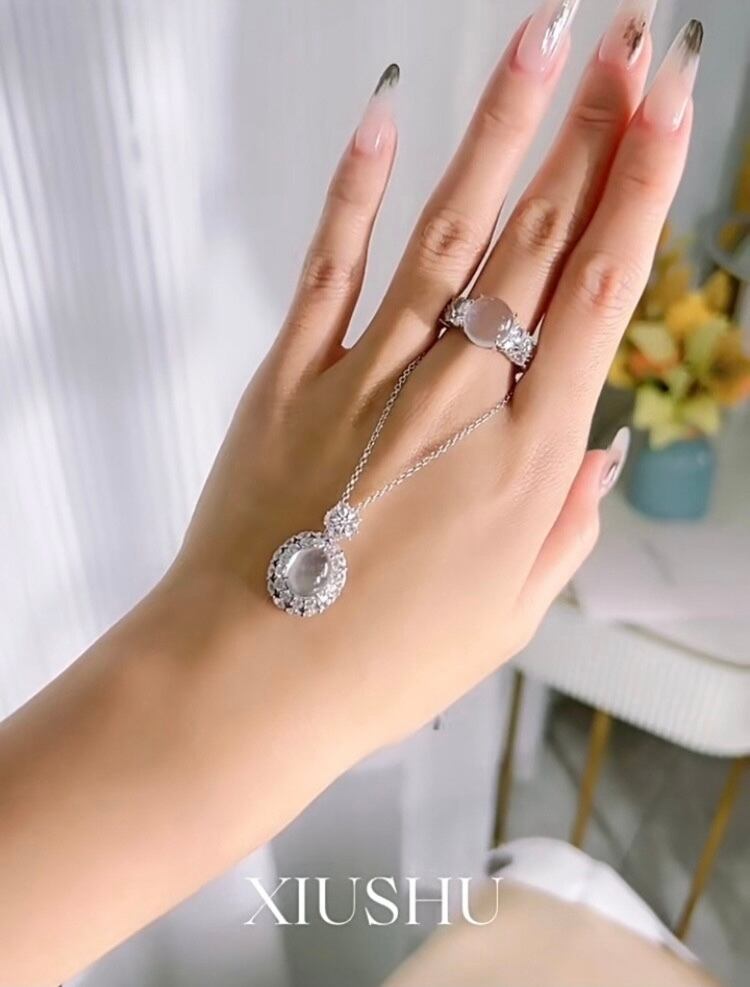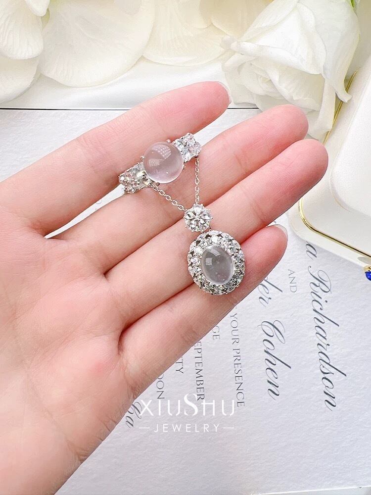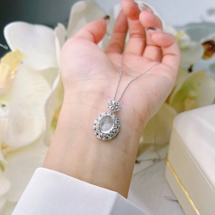 オリジナルの人工白翡翠と高炭素ダイヤモンドのネックレスになります。