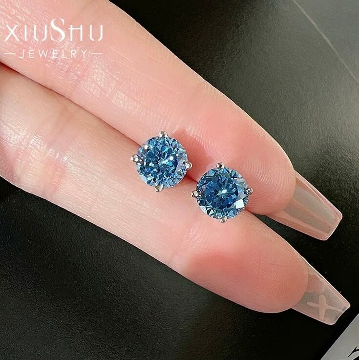 オリジナルの高炭素ダイヤモンドの人工ブルートパーズのスタッドピアスになります。