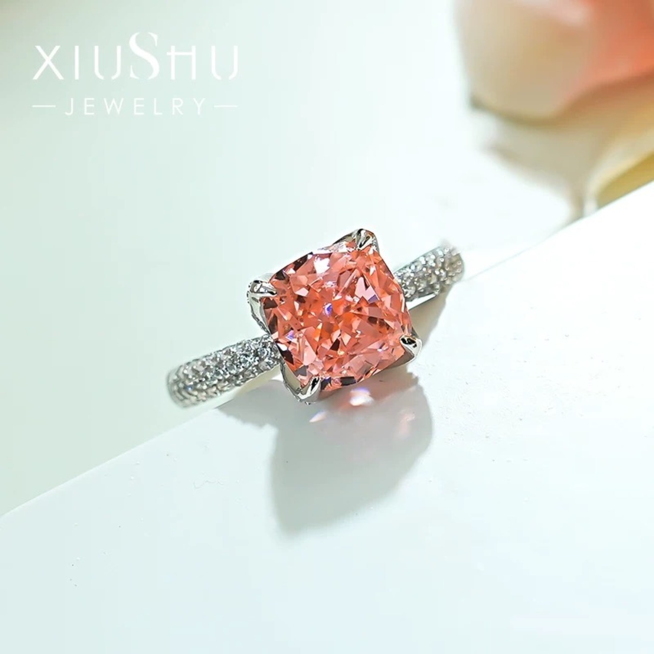 人工パパラチアサファイア 高炭素ダイヤモンド キラキラ ゴージャス 指輪 ピンク オレンジ リング パヴェ
