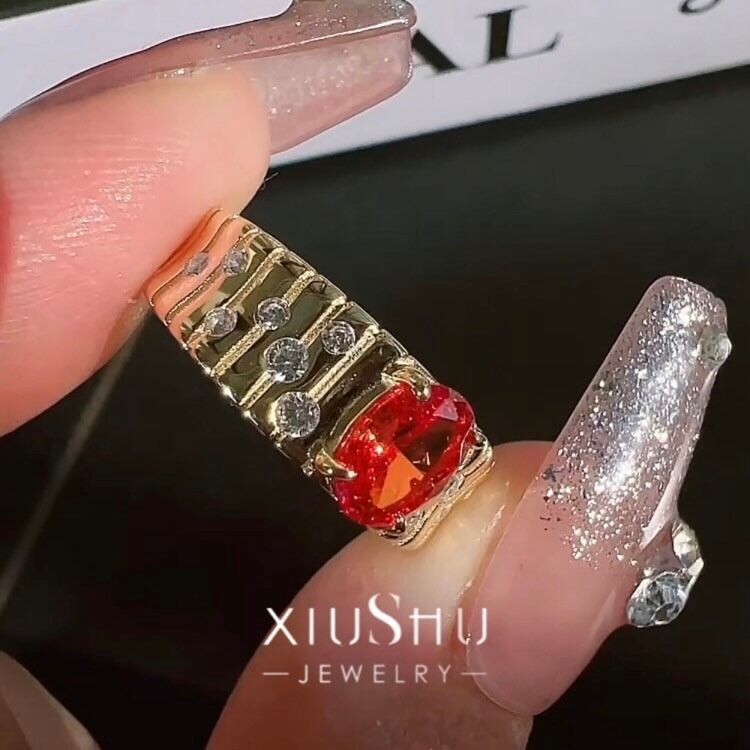 オリジナルの高炭素ダイヤモンドの人工オレンジサファイアリングになります。