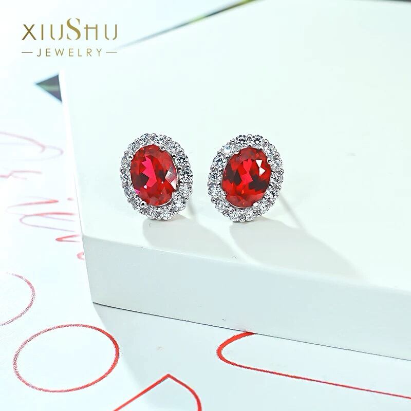 オリジナルの人工ルビーと高炭素ダイヤモンドのスタッドピアスになります。