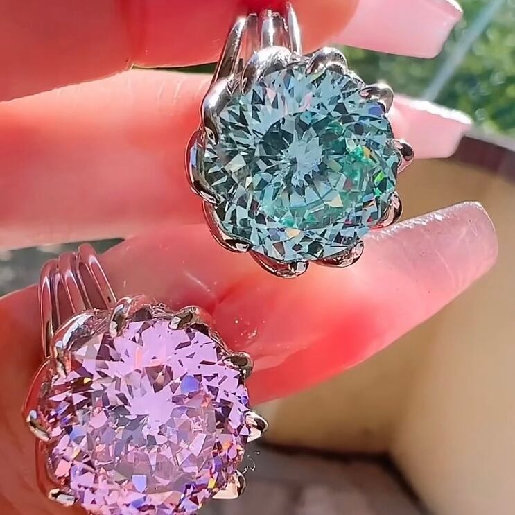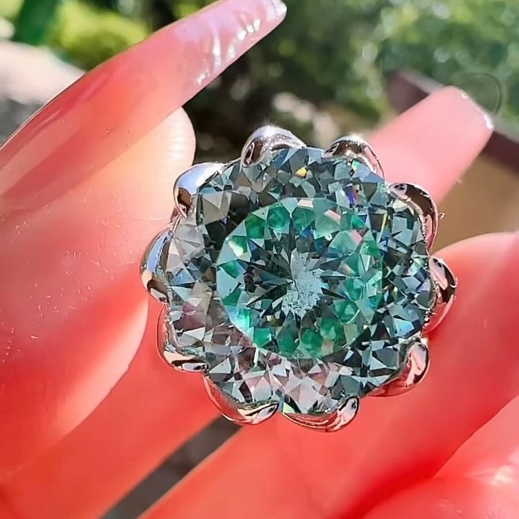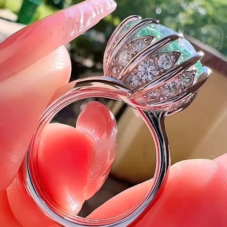 10カラット スーパーフラッシュ 花火 高炭素ダイヤモンド 人工ブルーグリーントルマリン キラキラ ゴージャス ラグジュアリー リング フラワー | キラキラゴージャスジュエリーのXIUSHU(シュシュ)