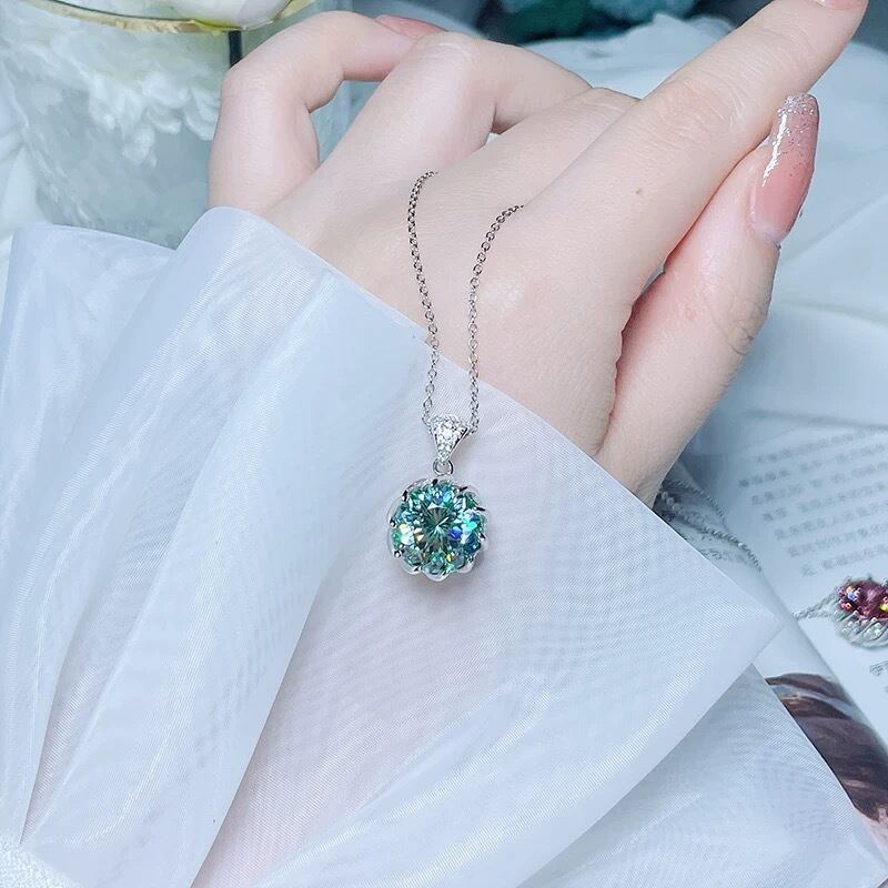 10カラット スーパーフラッシュ 花火 高炭素ダイヤモンド 人工ブルーグリーントルマリン キラキラ ゴージャス ラグジュアリー ネックレス フラワー | キラキラゴージャスジュエリーのXIUSHU(シュシュ)