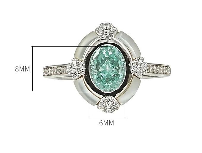 オリジナルの高炭素ダイヤモンドの人工アクアマリンと人工マザーオブパールのリングになります。