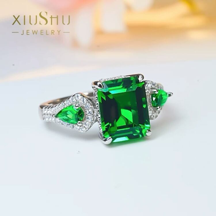 オリジナルの高炭素ダイヤモンドの人工グリーントルマリンリングになります。