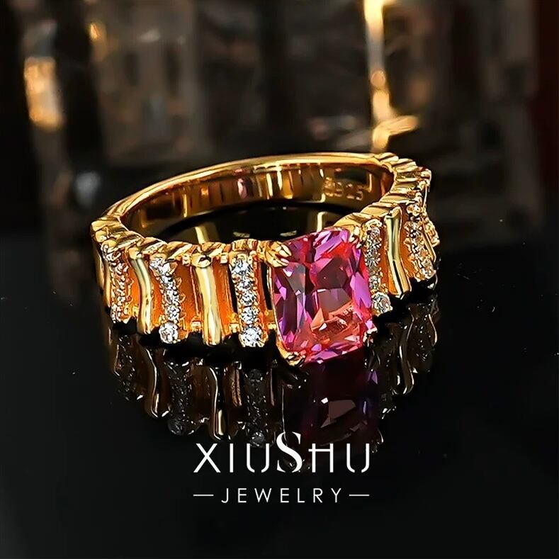 オリジナルの人工ピンクトルマリンと高炭素ダイヤモンドリングになります。