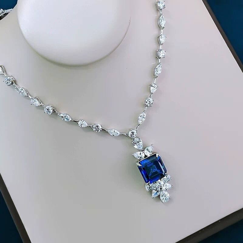 16カラット 人工サファイア 高炭素ダイヤモンド キラキラ ゴージャス ラグジュアリー エタニティネックレス ブルー 青 ビッグ