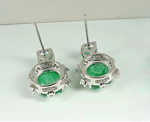 合成エメラルドを使用。天然エメラルドの組成特性をシミュレートし、宝石に蛍光感があり、 脱脂綿の若干の曇り、若干の雲霧状の綿、不規則な割れ、インクルージョン、クラック、内容物の結晶化など レベルの高いエメラルドに取って代わります! 全体的に透明感がありとてもツヤツヤです!