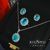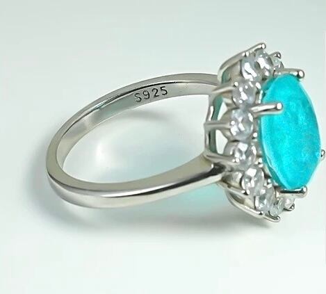 合成パライバトルマリンを使用。組成特性をシミュレートし、宝石に蛍光感があり、 脱脂綿の若干の曇り、若干の雲霧状の綿、不規則な割れ、インクルージョン、クラック、内容物の結晶化など レベルの高いパライバトルマリンに取って代わります! 全体的に透明感がありとてもツヤツヤです!