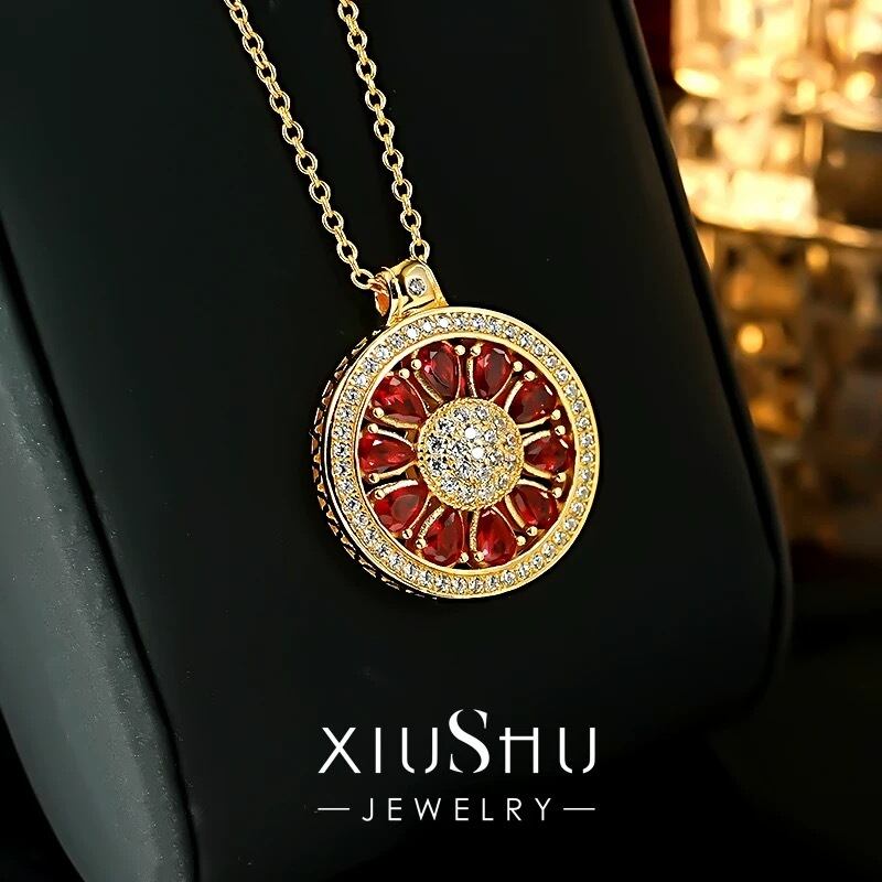 オリジナルの人工ルビーと高炭素ダイヤモンドのネックレスになります。