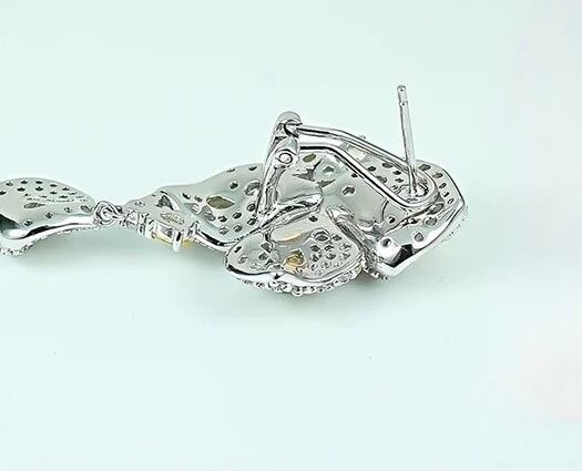 フラワー イエロー 高炭素ダイヤモンド キラキラ ゴージャス ラグジュアリー 白 ロングピアス 花 黄色