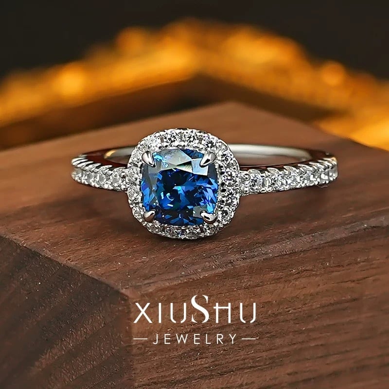 オリジナルの人工サファイアと高炭素ダイヤモンドのリングになります。