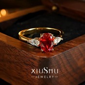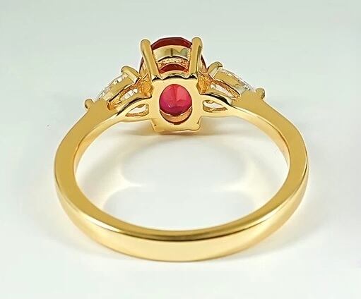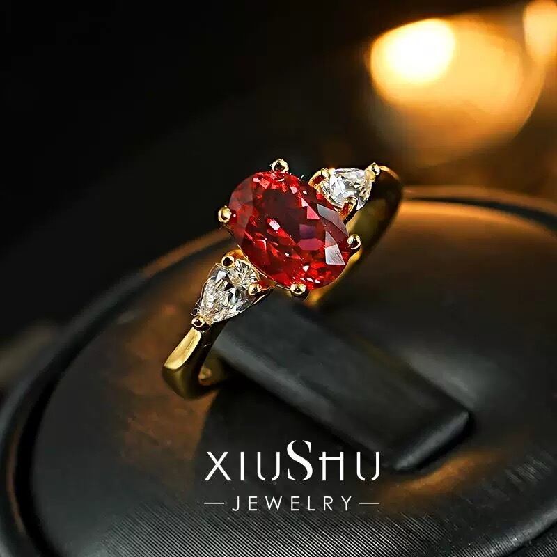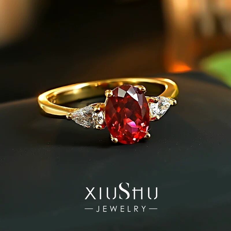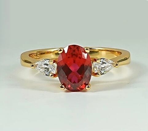 人工ルビー オーバル 3石 高炭素ダイヤモンド キラキラ ゴージャス リング ラグジュアリー レッド 赤 ピジョンブラッド 鳩の血 指輪 ハイカーボンダイヤモンド | キラキラゴージャスジュエリーのXIUSHU(シュシュ)