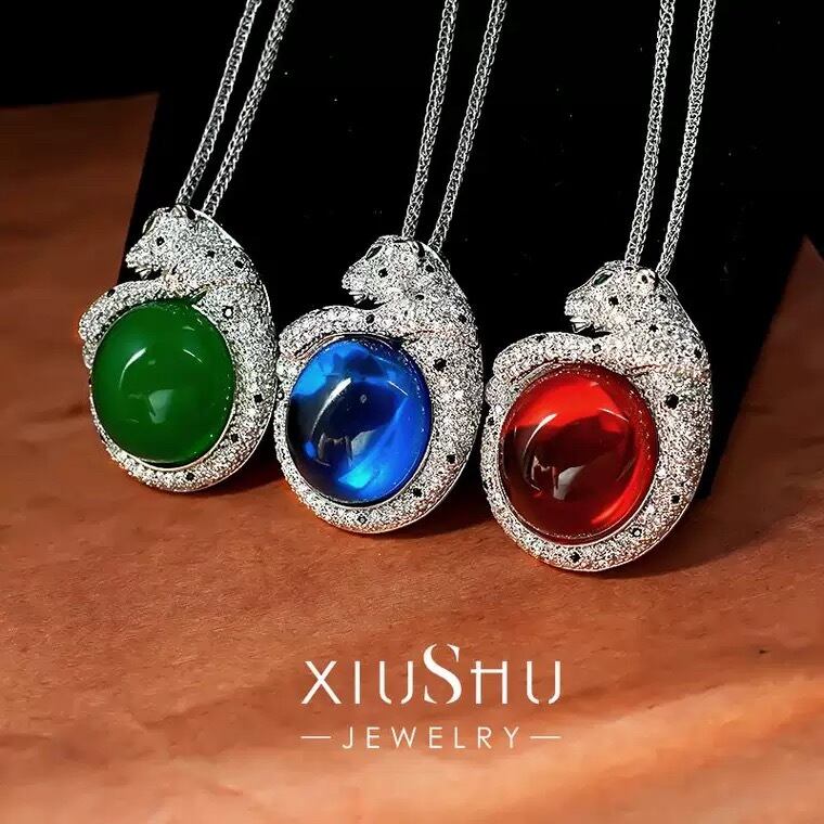 オリジナルの人工ルビーとオリジナルのヒョウデザインのネックレスになります。