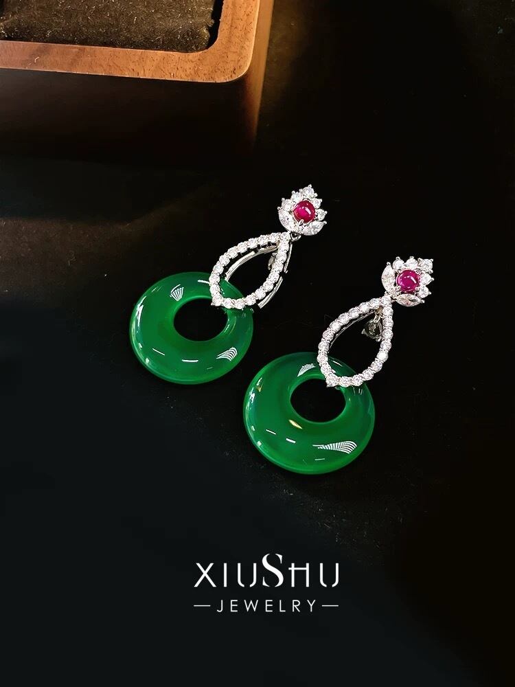 クリソプレーズ 人工ルビー 高炭素ダイヤモンド リング キラキラ ゴージャス レトロ グリーン 緑 スタッドピアス ハイカーボンダイヤモンド シルバー925 カルセドニー ロングピアス | キラキラゴージャスジュエリーのXIUSHU(シュシュ)