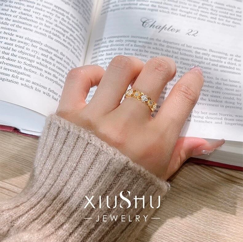 四葉のクローバー ミル打ち 高炭素ダイヤモンド ホワイト キラキラ ゴージャス 指輪 ハイカーボンダイヤモンド シルバー925 レトロ 四つ葉 レトロ アート リング ゴールド | キラキラゴージャスジュエリーのXIUSHU(シュシュ)