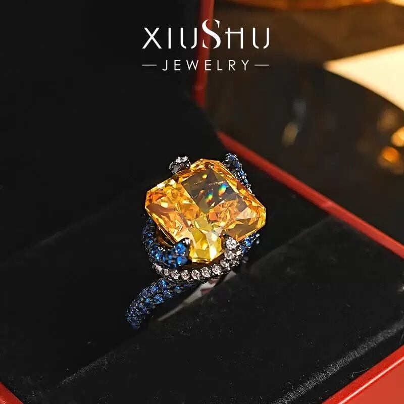10カラット イエロー ダークスタイル スクエア ブラック ゴージャス ラグジュアリー リング レトロ 人工ダイヤモンド 青 大きめ ビッグ 指輪 ラージ カラフル 黒 ブルー 青 メレ 黄色 | キラキラゴージャスジュエリーのXIUSHU(シュシュ)