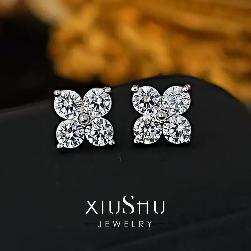 四葉のクローバー 高炭素ダイヤモンド ホワイト キラキラ ゴージャス シンプル スタッドピアス ハイカーボンダイヤモンド シルバー925 メレ 四つ葉 | キラキラゴージャスジュエリーのXIUSHU(シュシュ)