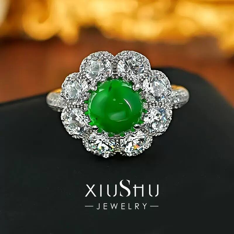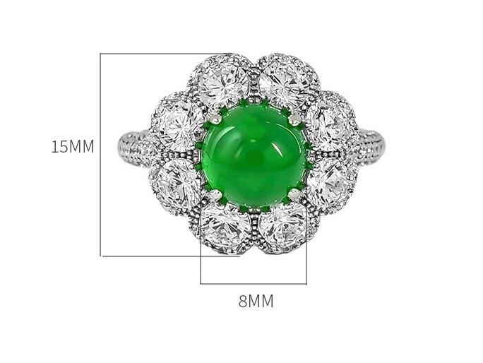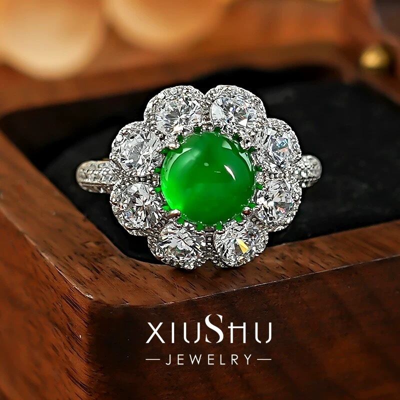 フラワー 人工クリソプレーズ 高炭素ダイヤモンド リング キラキラ ゴージャス レトロ グリーン 緑 ハイカーボンダイヤモンド シルバー925 カルセドニー リング 指輪 ミル打ち レトロ 花 | キラキラゴージャスジュエリーのXIUSHU(シュシュ)