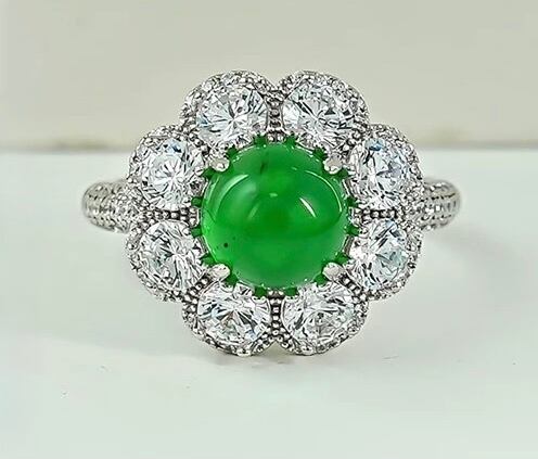 オリジナルの人工グリーンクリソプレーズと高炭素ダイヤモンドのリングになります。