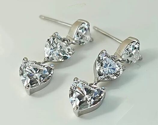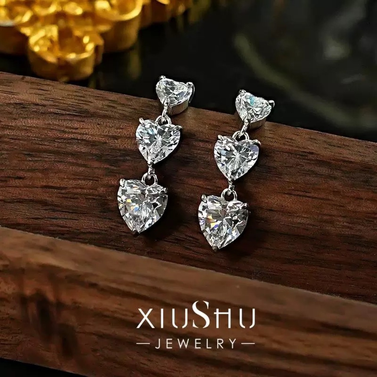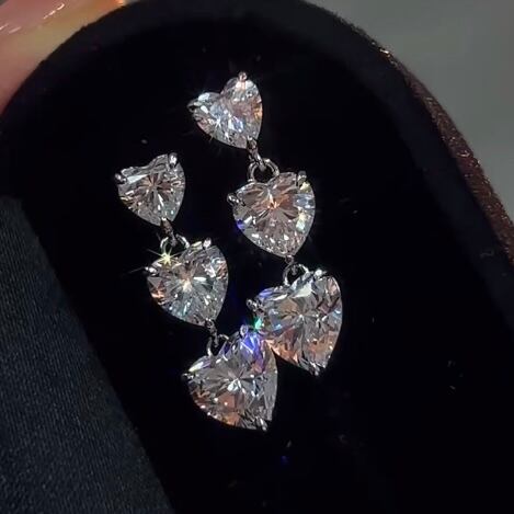ハートシェイプ 高炭素ダイヤモンド キラキラ ゴージャス ラグジュアリー 白 スタッドピアス 大人かわいい 可愛い ハイカーボンダイヤモンドダイヤモンド 揺れる ロウ ダングルピアス | キラキラゴージャスジュエリーのXIUSHU(シュシュ)