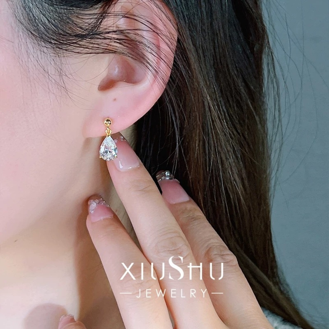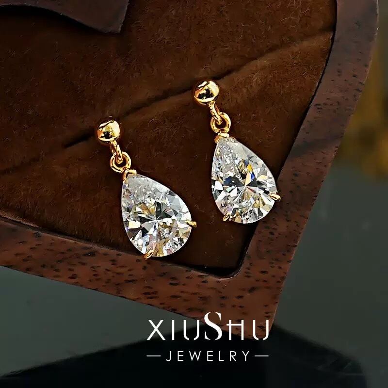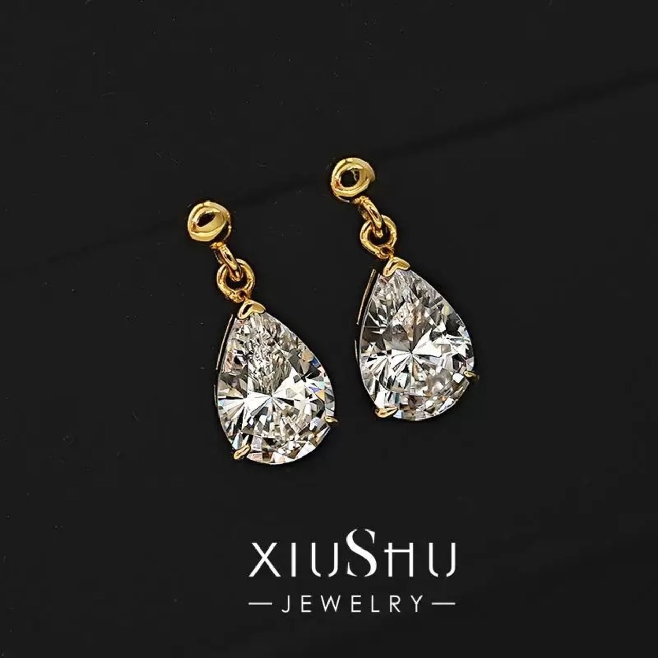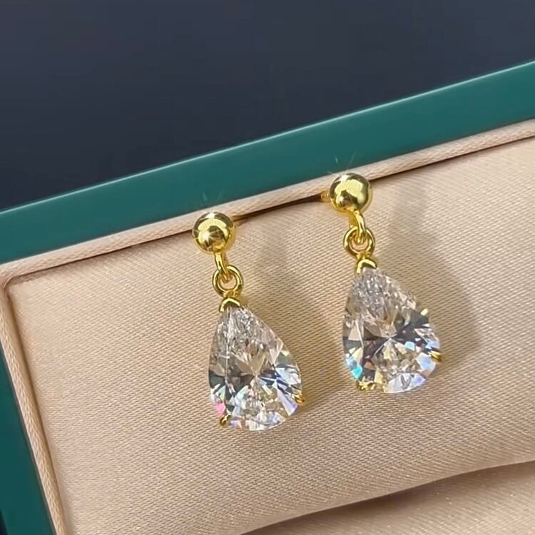 3ct ペアシェイプ 高炭素ダイヤモンド ホワイト キラキラ ゴージャス ソリティアピアス ハイカーボンダイヤモンド シルバー925 イエローゴールド 大きめ 一粒 1粒 スタッドピアス ドロップ | キラキラゴージャスジュエリーのXIUSHU(シュシュ)