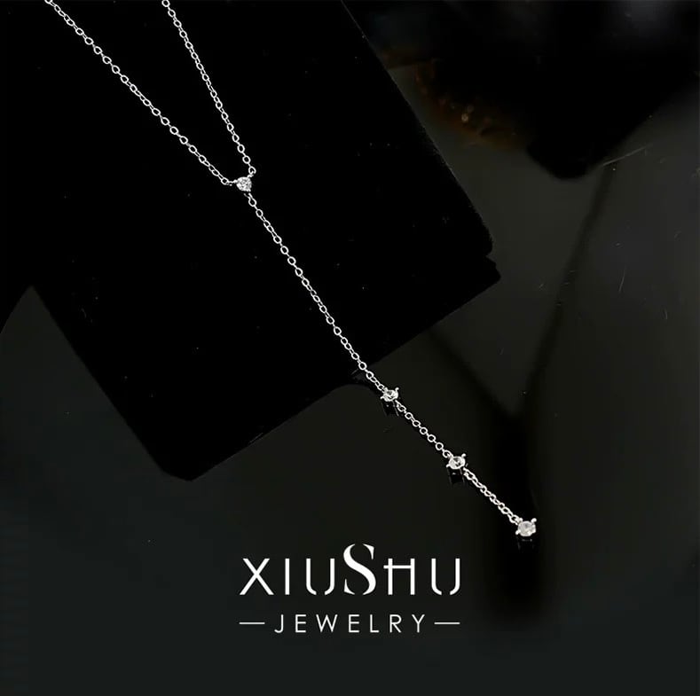 Y字ネックレス 高炭素ダイヤモンド キラキラ ゴージャス ネックレス ホワイト 白 シンプル ハイカーボンダイヤモンド ラウンド ネックレス ロング 揺れる セクシー タッセル | キラキラゴージャスジュエリーのXIUSHU(シュシュ)