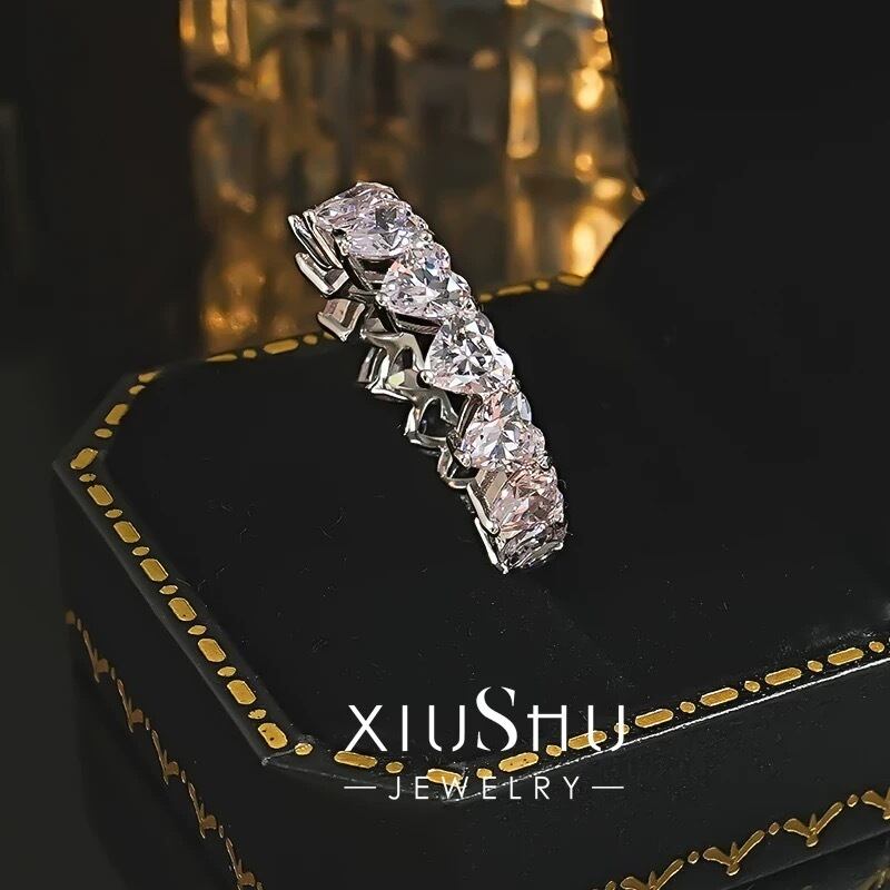 ハート 高炭素ダイヤモンド キラキラ ゴージャス 指輪 ハイカーボンダイヤモンド エタニティリング フル 大人かわいい 可愛い ライトピンク | キラキラゴージャスジュエリーのXIUSHU(シュシュ)