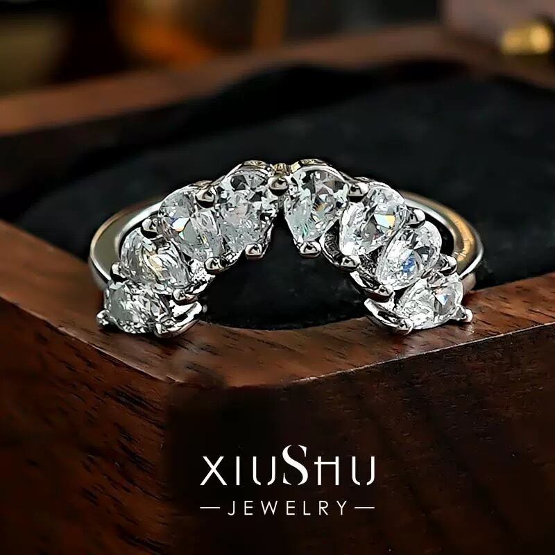 ペアシェイプ カーブ U字 高炭素ダイヤモンド キラキラ ゴージャス 指輪 ハイカーボンダイヤモンド ホワイト ハーフエタニティリング ドロップ 重ね付け シルバー925 | キラキラゴージャスジュエリーのXIUSHU(シュシュ)