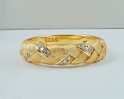 織物 ブラッシュ 高炭素ダイヤモンド ホワイト キラキラ ゴージャス 指輪 ワイドリング ハイカーボンダイヤモンド シルバー925 イエローゴールド レトロ | キラキラゴージャスジュエリーのXIUSHU(シュシュ)