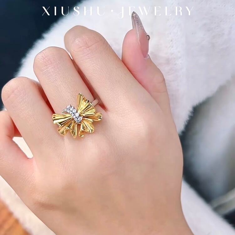 サテン リボン 高炭素ダイヤモンド ホワイト キラキラ ゴージャス 指輪 ハイカーボンダイヤモンド シルバー925 レトロ アート リング イエローゴールド 個性派 アート 大きめ | キラキラゴージャスジュエリーのXIUSHU(シュシュ)