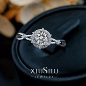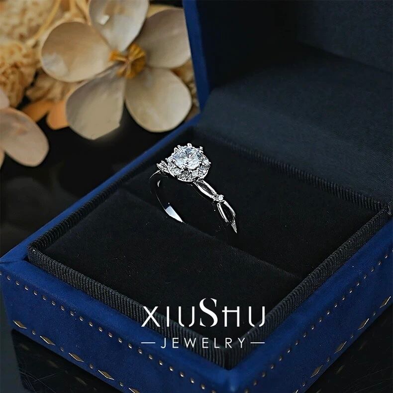 ラウンド チェーン 高炭素ダイヤモンド ホワイト キラキラ ゴージャス 指輪 ヘイローリング ハイカーボンダイヤモンド シルバー925 小さめ ウェディング フラワー 花 モダン | キラキラゴージャスジュエリーのXIUSHU(シュシュ)