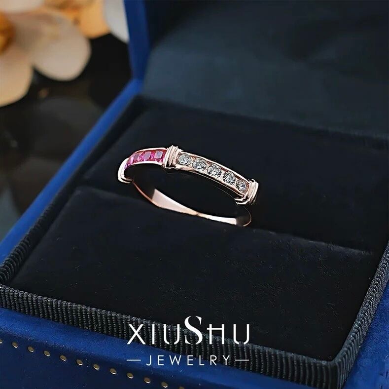 人工ルビー ホワイト ダブルカラー 高炭素ダイヤモンド キラキラ ゴージャス 指輪 リング ハイカーボンダイヤモンド シルバー925 小さめ ピンク ローズゴールドメッキ | キラキラゴージャスジュエリーのXIUSHU(シュシュ)