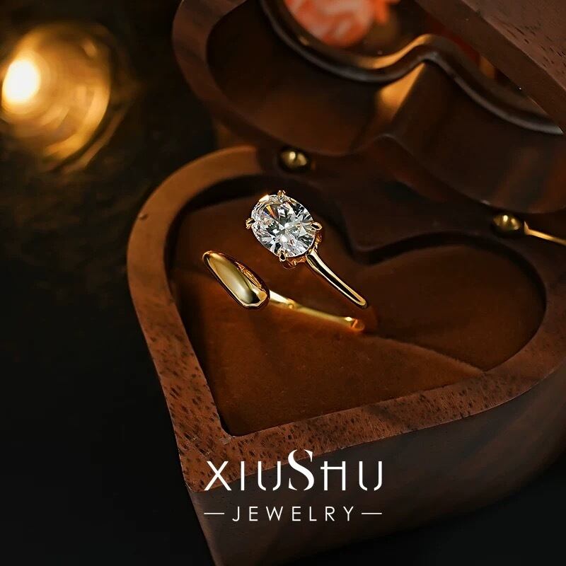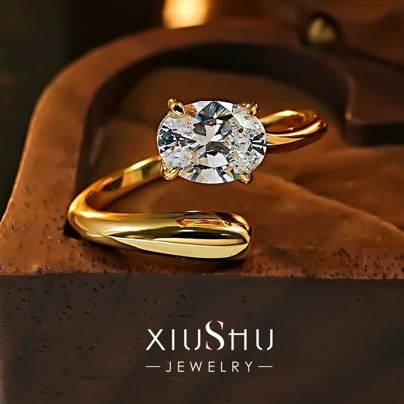 2ct オーバル 高炭素ダイヤモンド ホワイト キラキラ ゴージャス 指輪 ソリティアリング ハイカーボンダイヤモンド シルバー925 イエローゴールド シンプル 一粒 1粒 調整可能 フリーサイズ | キラキラゴージャスジュエリーのXIUSHU(シュシュ)