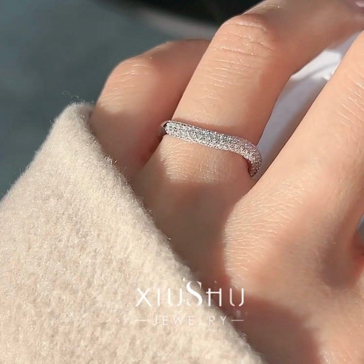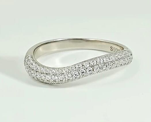 カーブ パヴェ 高炭素ダイヤモンド キラキラ ゴージャス ラグジュアリー 指輪 ハイカーボンダイヤモンド ホワイト シルバー925 メレ リング ロウ ヒップホップ ワイドリング | キラキラゴージャスジュエリーのXIUSHU(シュシュ)