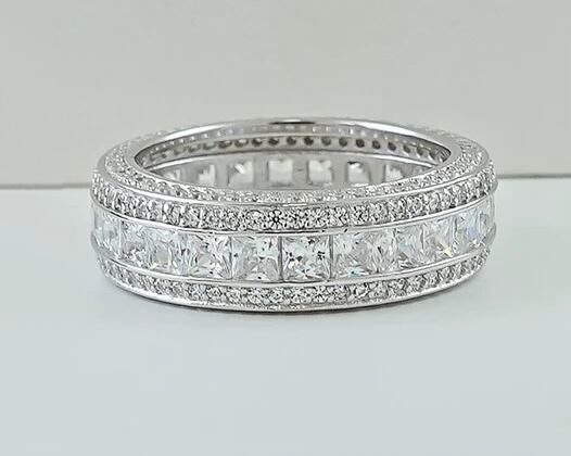 プリンセスカット 高炭素ダイヤモンド キラキラ ゴージャス ラグジュアリー 指輪 ハイカーボンダイヤモンド ホワイト フルエタニティリング ワイドリング ヘイローリング シルバー925 ロウ | キラキラゴージャスジュエリーのXIUSHU(シュシュ)