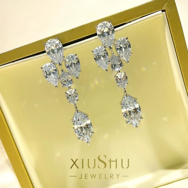 マーキス ペアシェイプ 高炭素ダイヤモンド ホワイト キラキラ ゴージャス ピアス ハイカーボンダイヤモンド シルバー925 スタッドピアス タッセルピアス 揺れる ドロップ ロングピアス ラグジュアリー 大きい ビッグ シャンデリア ドロップ レトロ | キラキラゴージャスジュエリーのXIUSHU(シュシュ)