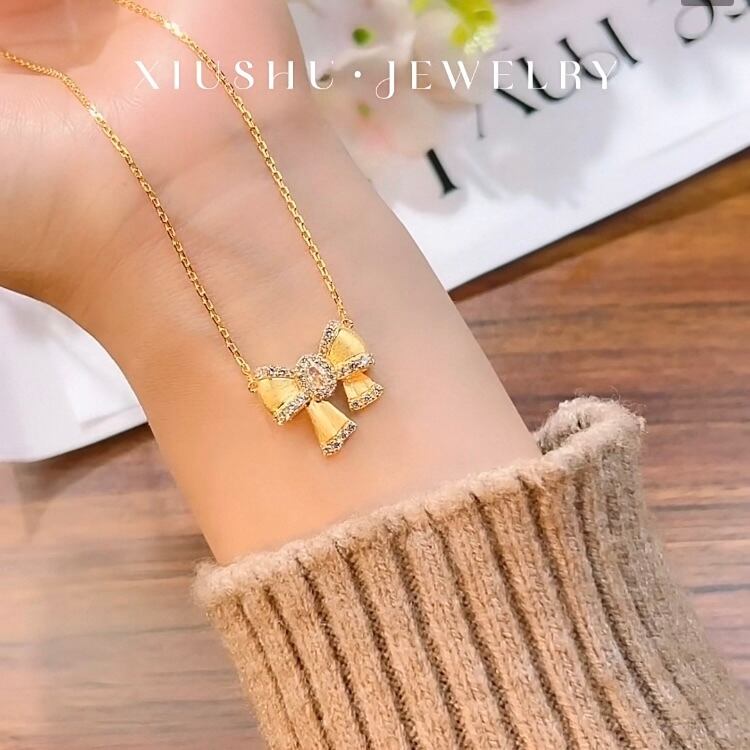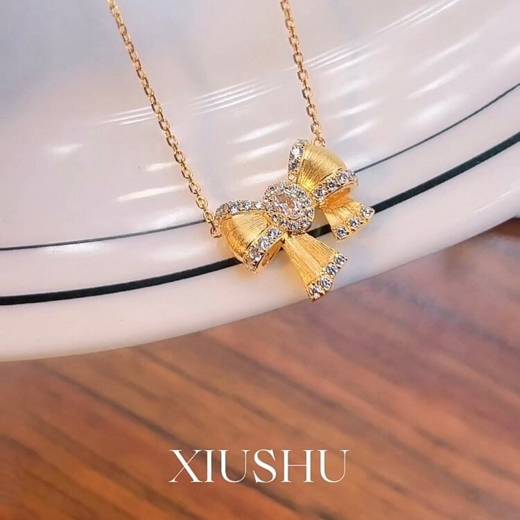 リボン ブラッシュ 高炭素ダイヤモンド キラキラ ゴージャス ネックレス ホワイト 白 ハイカーボンダイヤモンド ガーリー 大人かわいい パヴェ メレ シルバー925 可愛い レトロ イエローゴールド | キラキラゴージャスジュエリーのXIUSHU(シュシュ)