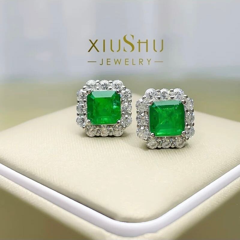 人工エメラルド フラワー 高炭素ダイヤモンド キラキラ ゴージャス ホワイト スタッドピアス ハイカーボンダイヤモンド 花 グリーン 緑 ヘイローピアス レトロ 大きめ シルバー925 | キラキラゴージャスジュエリーのXIUSHU(シュシュ)