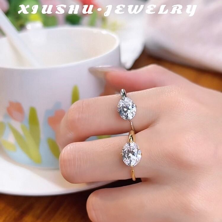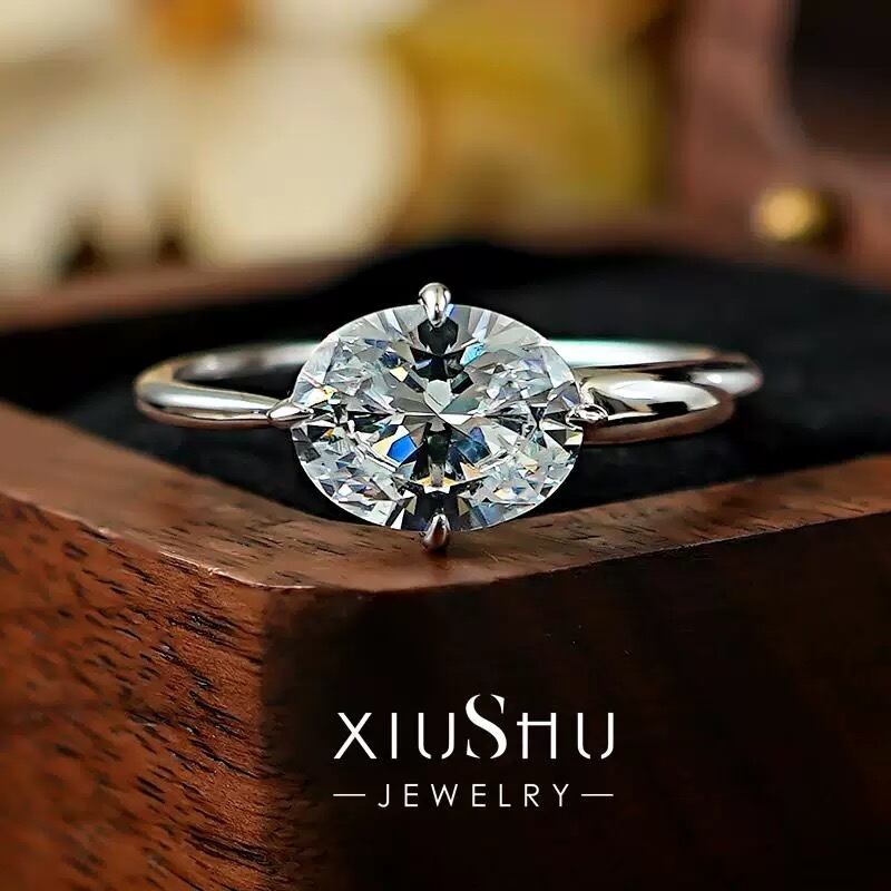 オーバル 高炭素ダイヤモンド ホワイト キラキラ ゴージャス 指輪 ソリティアリング 一粒 ハイカーボンダイヤモンド ビッグ シルバー925 大きい リング クール 1粒 シンプル | キラキラゴージャスジュエリーのXIUSHU(シュシュ)