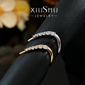 高炭素ダイヤモンド ホワイト キラキラ ゴージャス 指輪 ハイカーボンダイヤモンド シルバー925 イエローゴールド リング シンプル カーブ メレ ウェディング | キラキラゴージャスジュエリーのXIUSHU(シュシュ)