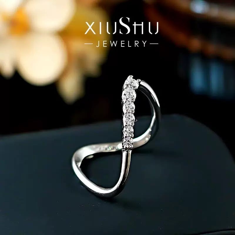 高炭素ダイヤモンド ホワイト キラキラ ゴージャス 指輪 ハイカーボンダイヤモンド シルバー925 リング シンプル カーブ メレ ウェディング | キラキラゴージャスジュエリーのXIUSHU(シュシュ)