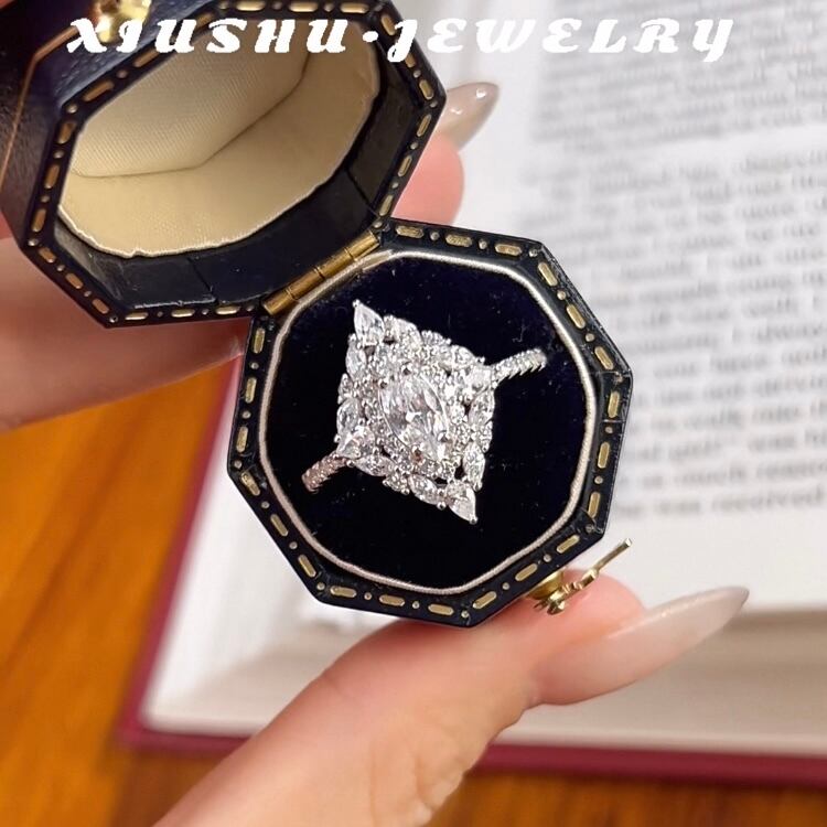 マーキス 高炭素ダイヤモンド ホワイト キラキラ ゴージャス 指輪 ダブルヘイローリング ハイカーボンダイヤモンド ビッグ シルバー925 大きい リング クール | キラキラゴージャスジュエリーのXIUSHU(シュシュ)